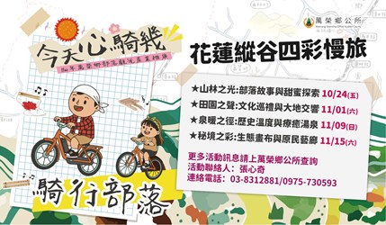 (三)更多活動訊息及報名請掃描QR CODE、萬榮鄉公所網頁查詢或電話洽詢該所文化暨觀光課,吳先生,電話:03-8751321分機233或活動聯絡人,張心奇,電話:03-8312881、0975-730593。