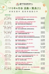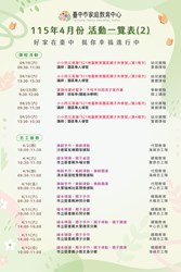 一、活動名稱:轉知臺中市家庭教育中心115年4月份活動一覽表