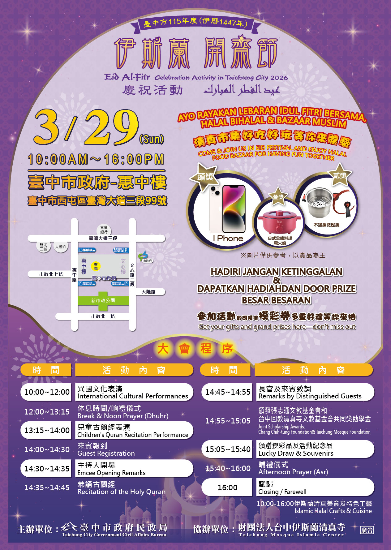 一、活動名稱:臺中市115年度伊斯蘭開齋節慶祝活動